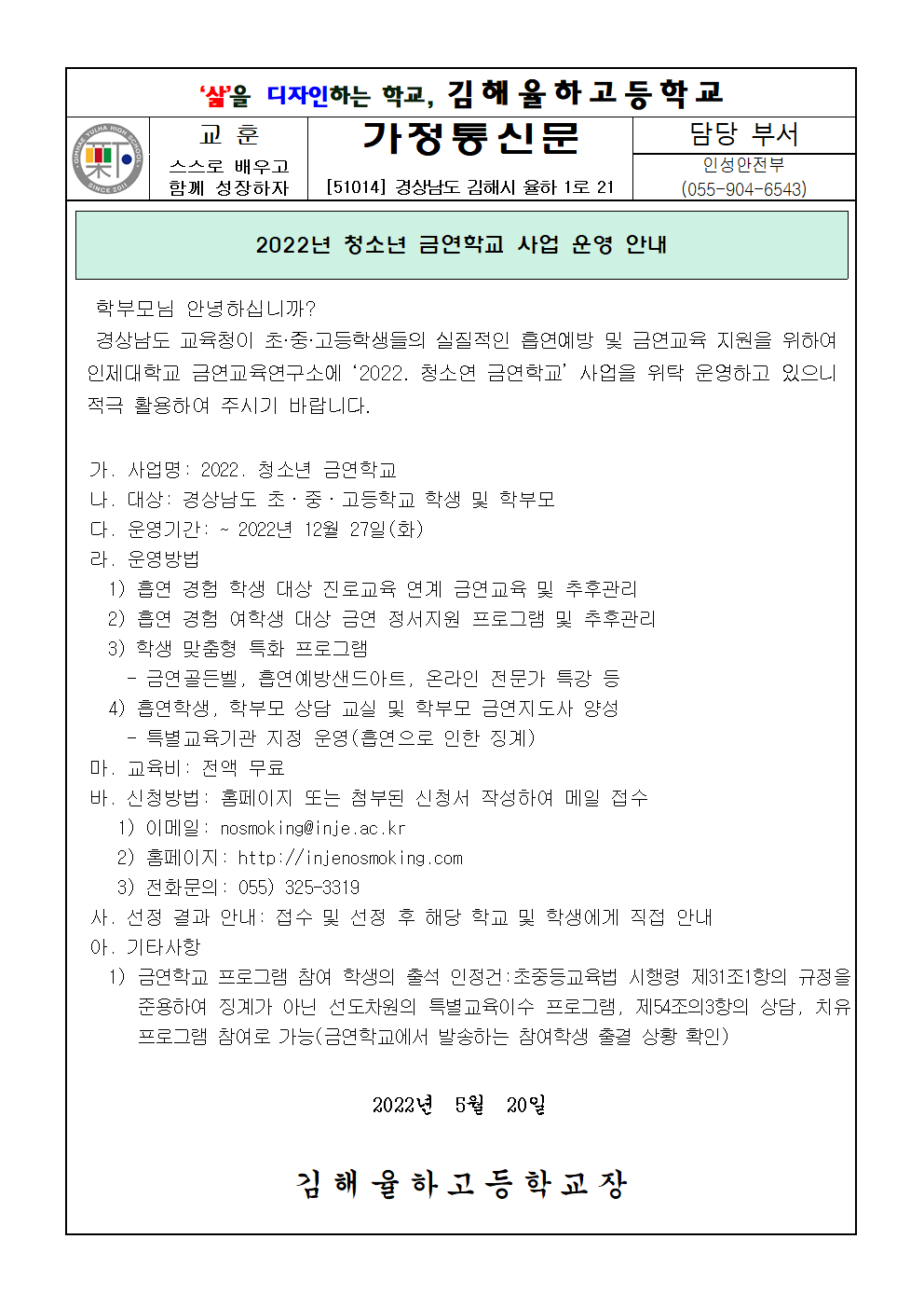 2022. 청소년 금연학교 사업 안내 가정통신문.hwp