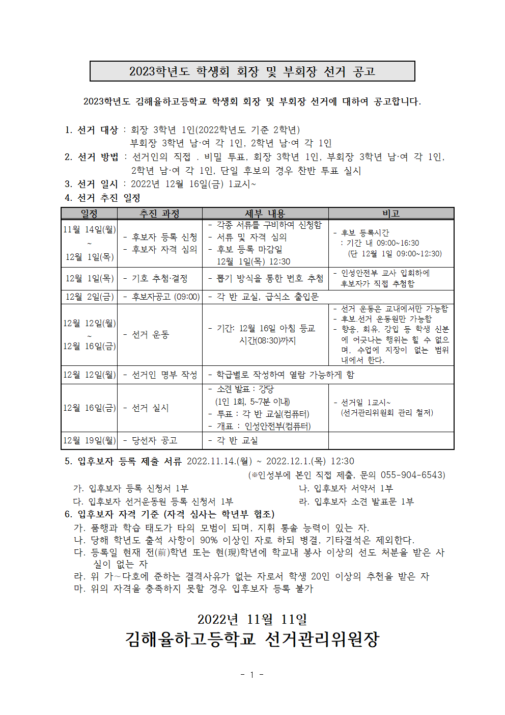 2023학년도 학생회 회장 및 부회장 선거 공고